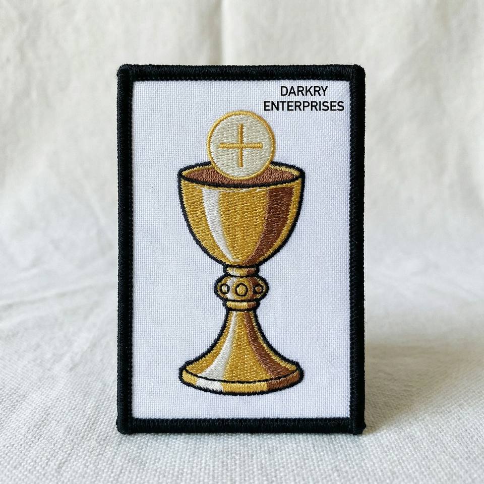 Custom Machine Embroidery Iron On Patch Gold Royal Crown Majesty Symbol Beige Background Rectangular Badge for Clothes Hats Bags