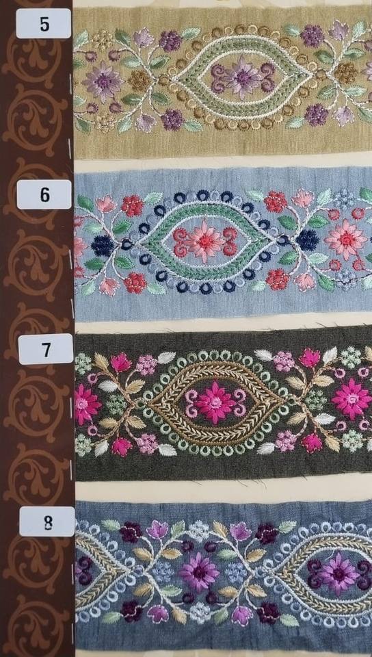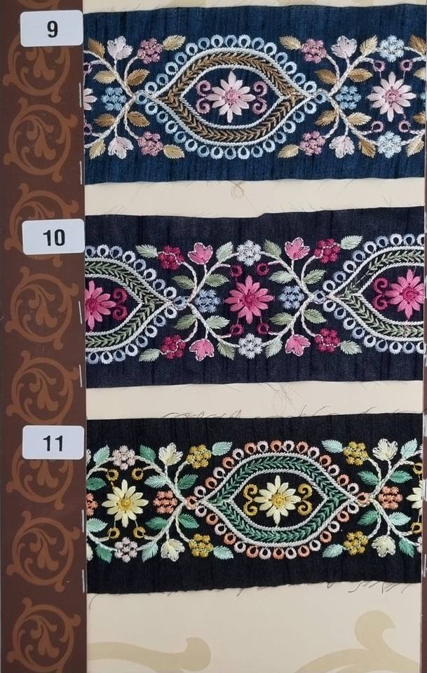 Custom Made 1.5 Inch Width Machine Embroidered Ribbons & Laces 100% Cotton in Various Designs Bright Colours for Wedding Dresses