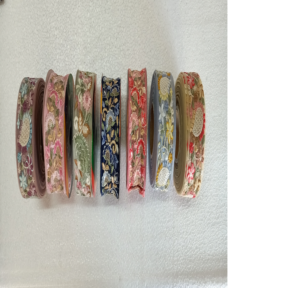 Custom-Made 1 Inch Wide Organza Net Fabric High Quality Machine Embroidered Wedding Dress Laces Various Designs and Colours