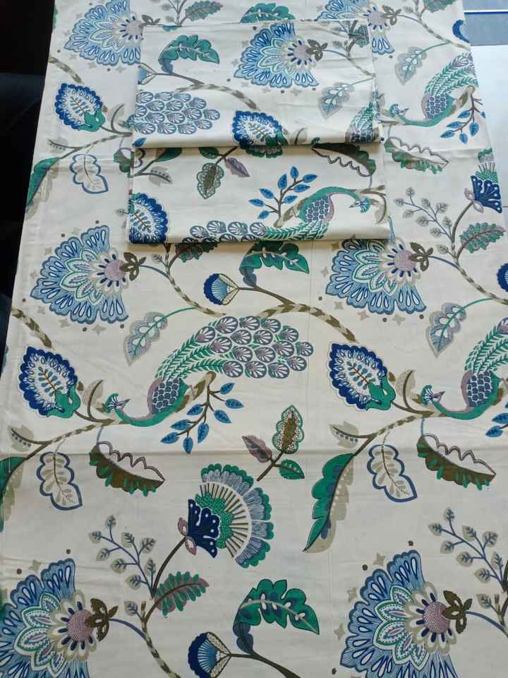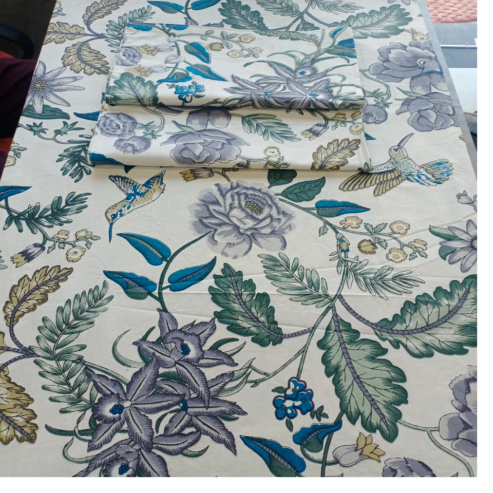 Custom Made 100% Cotton Bedsheets in Various Sizes in Floral Designs in Ocean Blue Coloured Flower Designs for Resale Purposes.