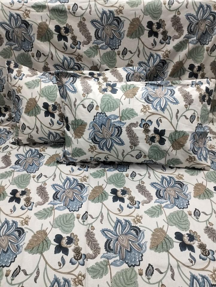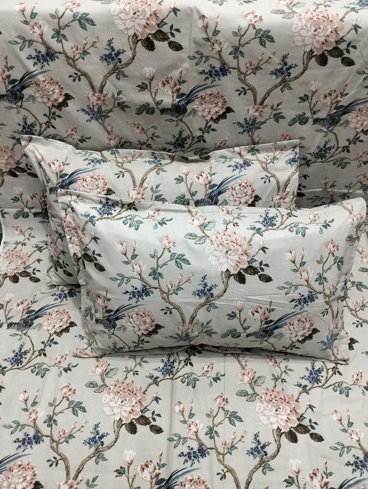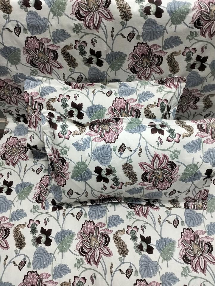Custom Made 100% Cotton Bedsheets in Different Designs & Various Sizes in Big Flower Designed on White Base Fabric.