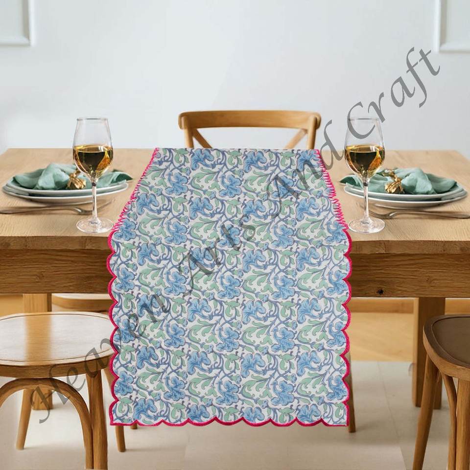 Custom Made 100% Cotton Fabric Hand Block Print Embroidery Edge Table Runners For Home & Hotels For Wholesale Wedding Event Home