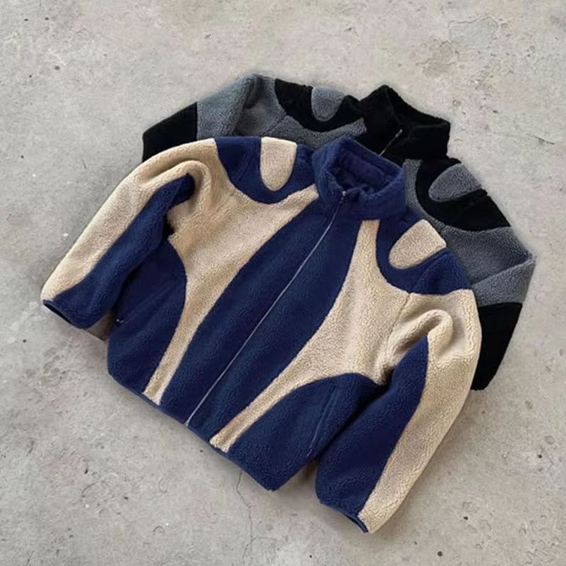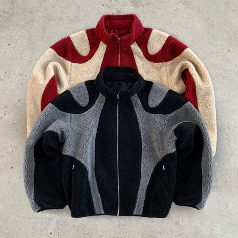 Custom Made 2026 New Design High Quality Custom Winter Sherpa Outfit Heavyweight Patchwork Fleece Zip-Up Jacket for Unisex