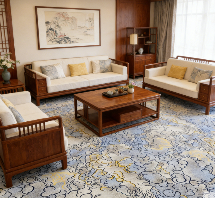 Custom Made 80% Wool + 20% Nylon66 Machine Made Carpet Anti-Fouling Treatment Water Resistant Stain Resistant Features for