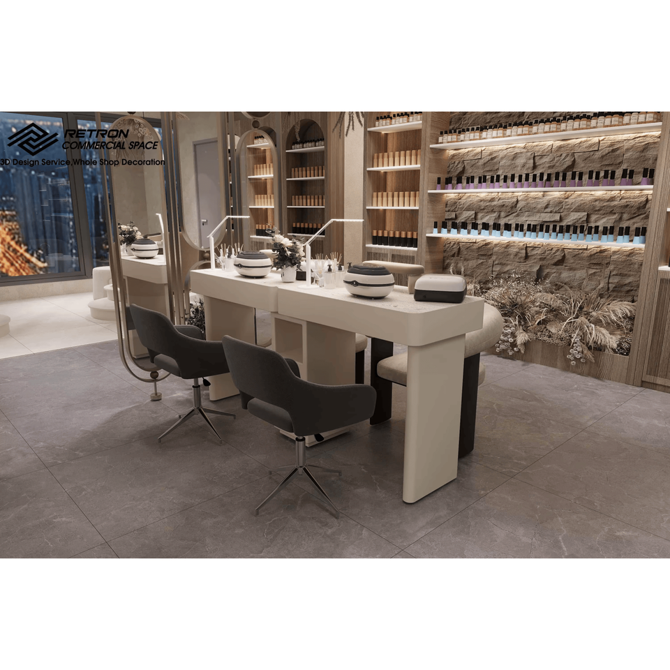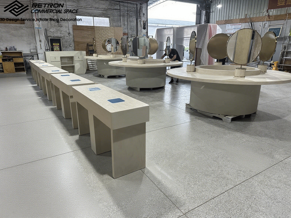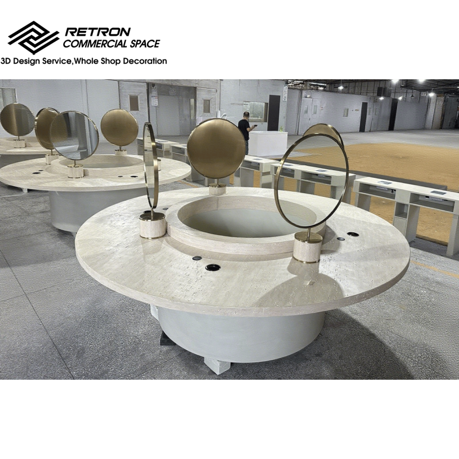 Custom-Made Barber Shop Furniture Retail Display Counter Custom Barber Mirrors Round Tables with Lighting For Salon Decor