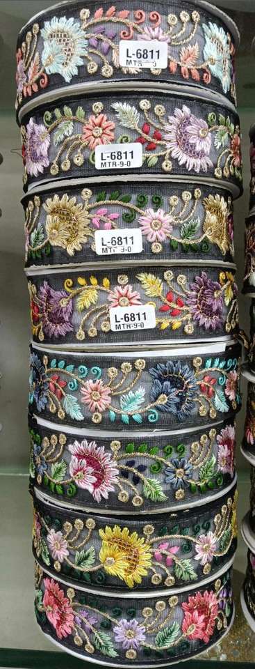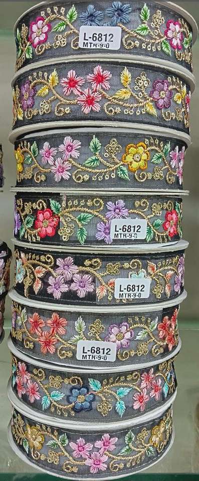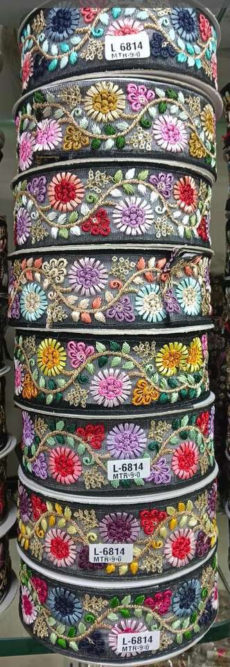 Custom Made Black Floral Embroidered Multi Colored Ribbons in Custom Made Sizes Ideal for Use As Borders and Trims