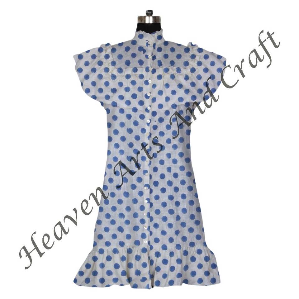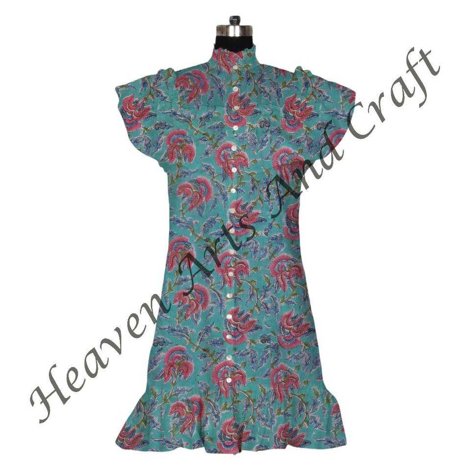 Custom Made Block Printed Cotton Short Sleeveless Tops Ideal For Women's Clothing Beautiful Hand Block Print Cotton Tunic Dress