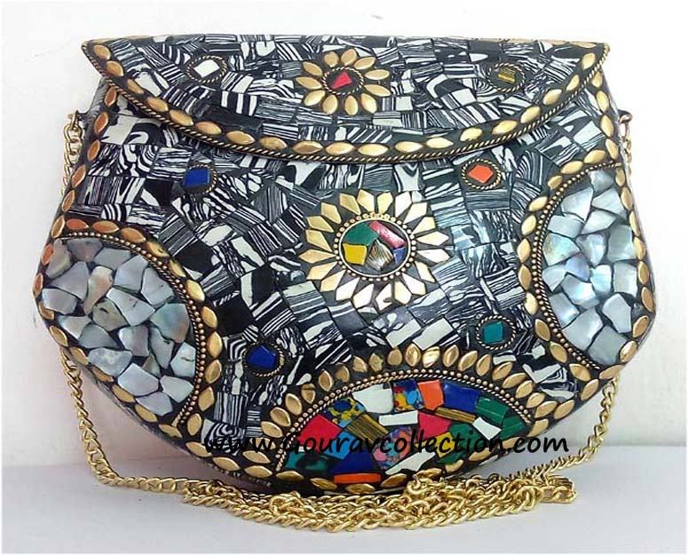 Custom Made Bohemian Style Metal Clutch Bag Cross Body Fashionable GC-BG-405 for Party Wear Best Price From India