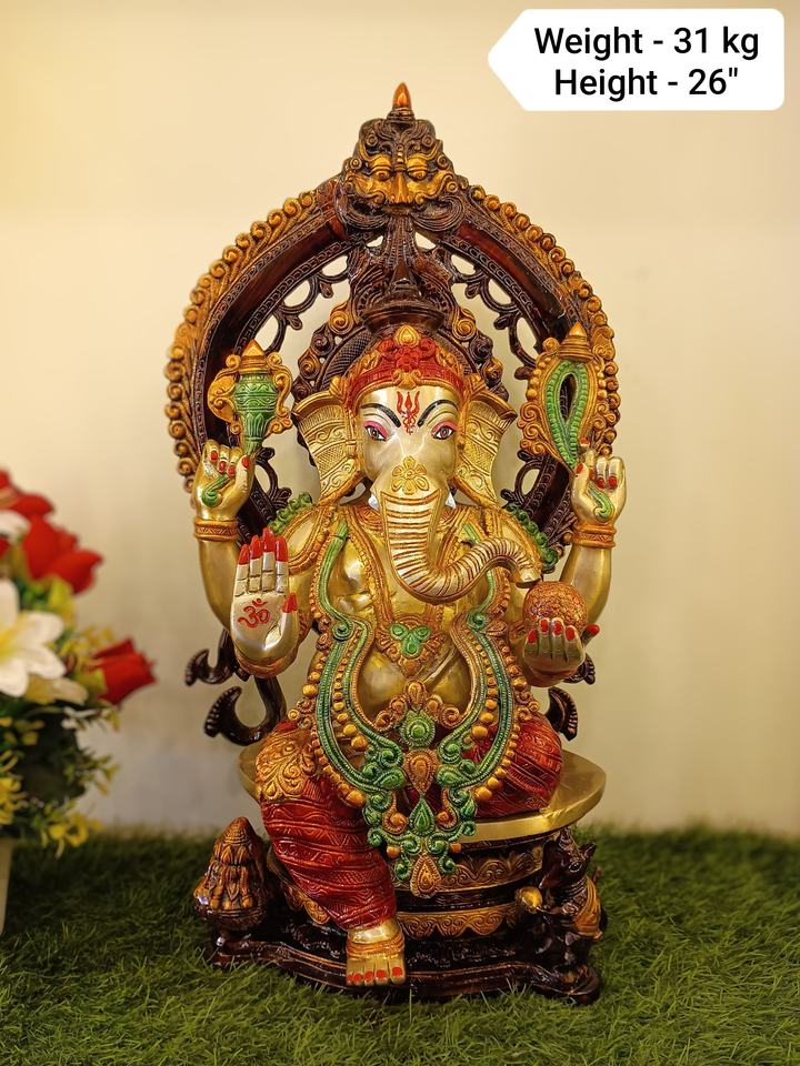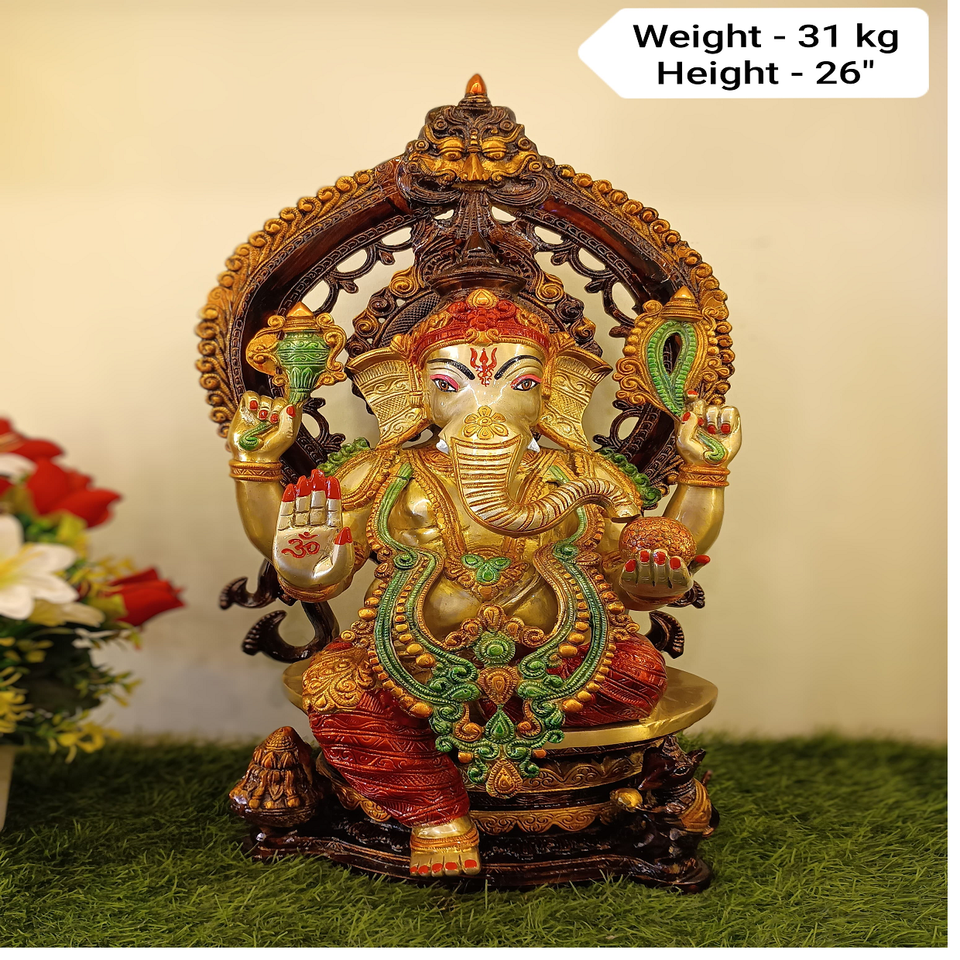 Custom Made Brass Hand Painted Ganesh Idols for Home Temples and Home Decoration Stores