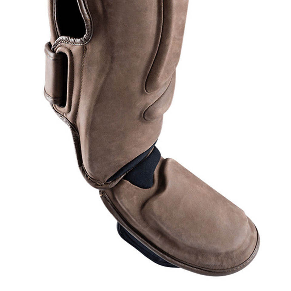 Custom Made Breathable Brown Color Professional Martial Arts MMA Boxing Strap Shin Pads for Unisex by Standard International