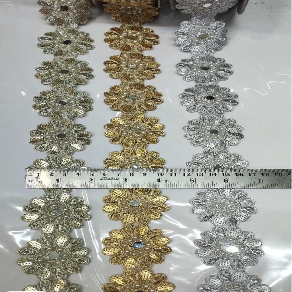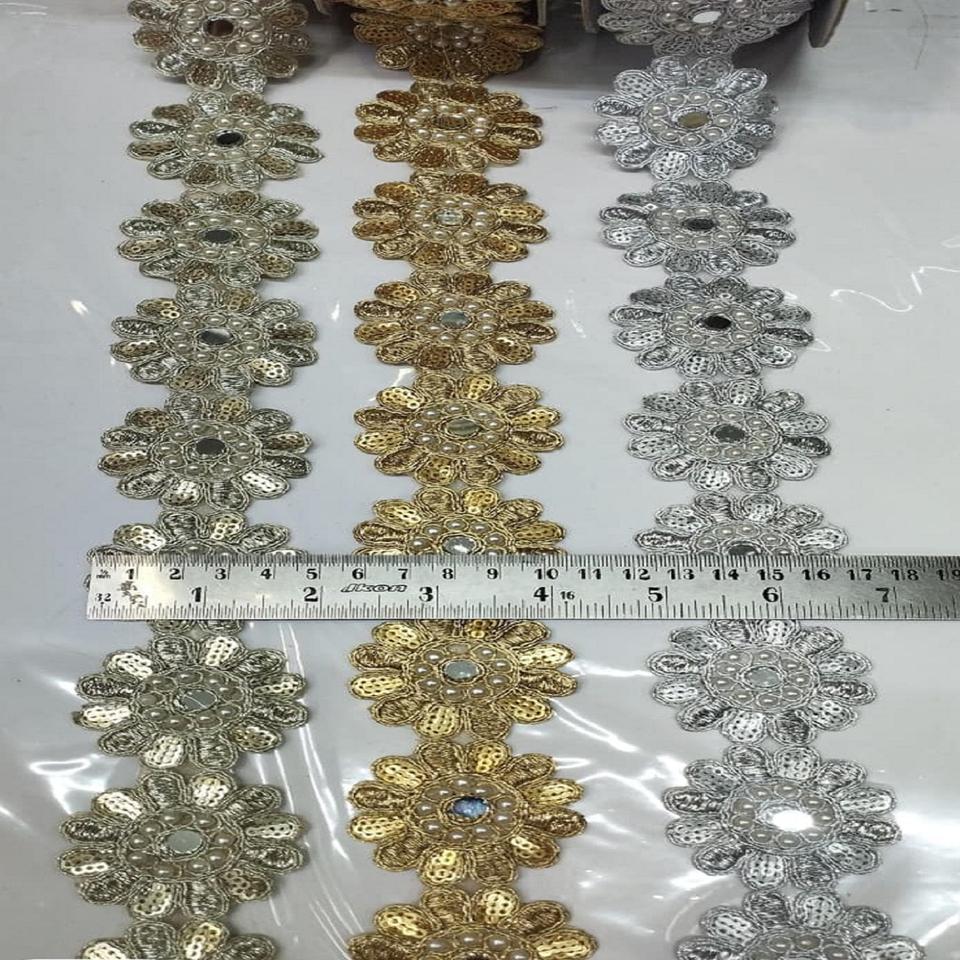 Custom Made Breathable Eco-Friendly Metallic Gold Zari Lace Fabric with Fine Zari Work for Bridal & Festive Dress Trimmings
