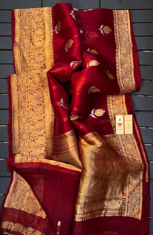 Custom Made Brocade Silk Sarees in Maroon Coloured Body & Gold Colour Border Ideal for Resale by Clothing Designers