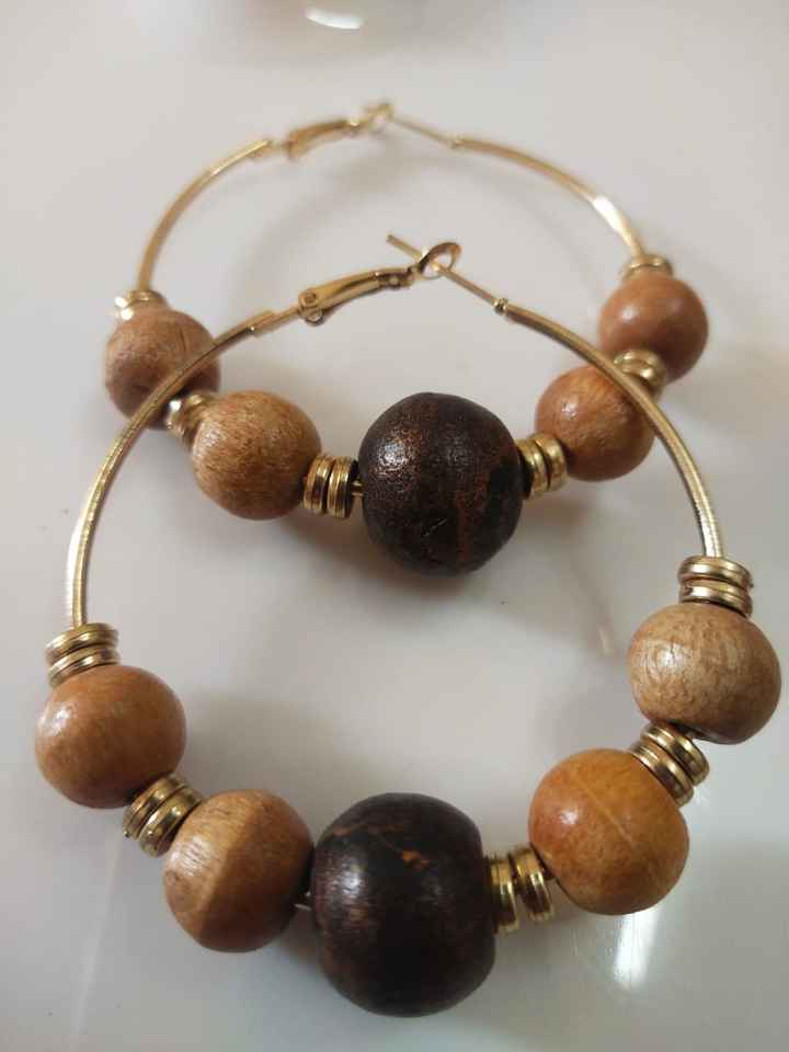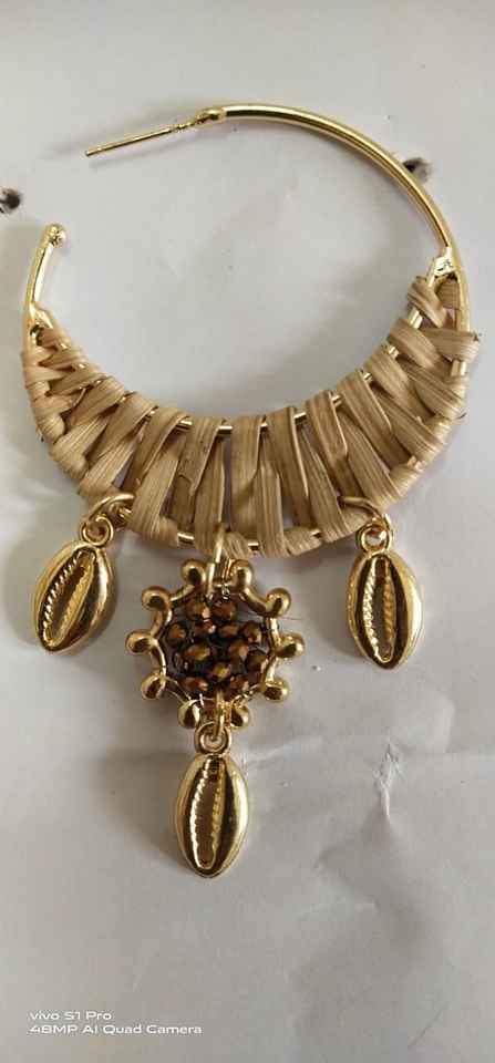 Custom Made Brown Gold Beaded Drop Earrings Cowry Sea Shell Wooden Bead Design Resale Fashion Accessories by Fashion Accessory