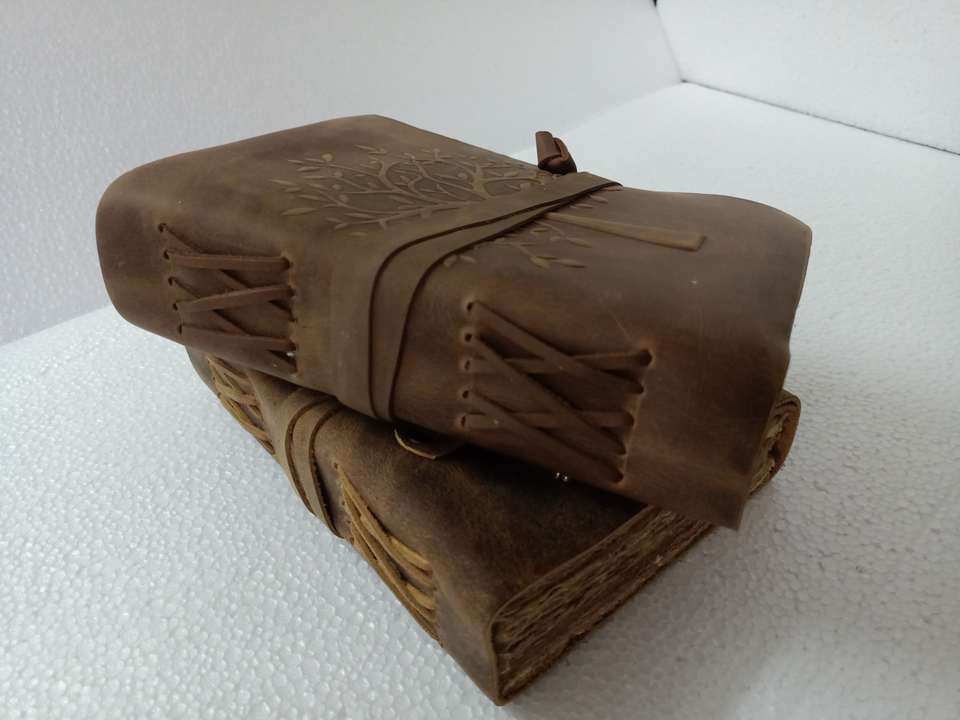 Custom Made Buffalo Leather Journals with Keys and Tree of Leather Embossed Journals Made Using Deckle Edged Paper