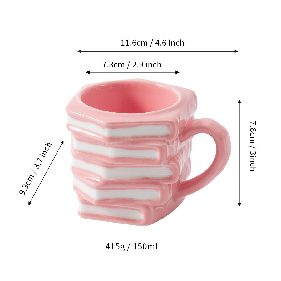 Custom Made Ceramic Book Mug Pink Creative Coffee Cup With Handle Reusable Gift For Presents 2025