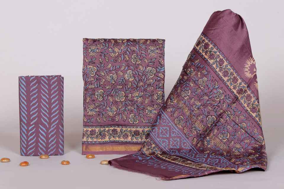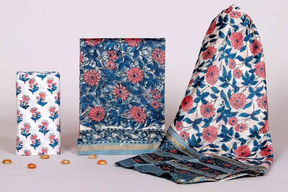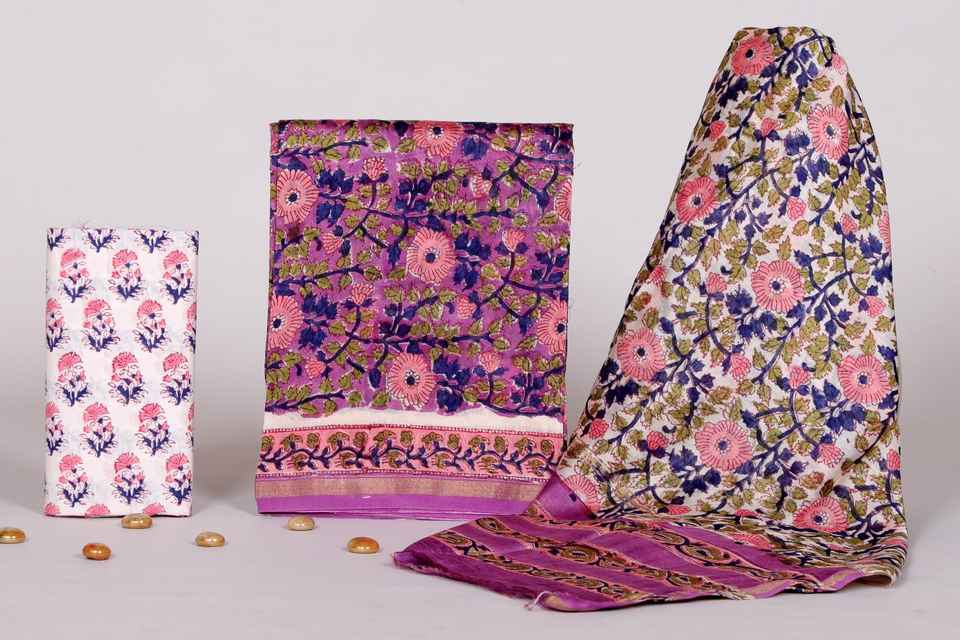 Custom Made Chanderi Silk Block Printed Dress Material for Girls & Ladies Dresses & for Resale.