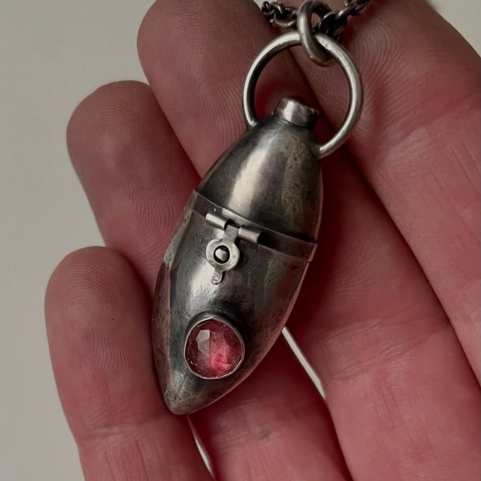 Custom Made Contemporary Design Opal Triangle Locket Pendant Necklace for Memorial Urn or Personal Jewelry for Punk Zircon