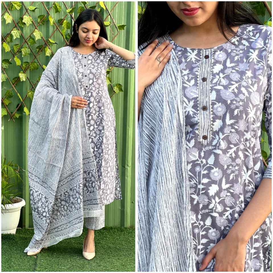 Custom Made Cotton Kurtis & Pants With Drape in Cotton Camric Fabric Available in Sizes in Light Pastel Coloured Floral Print.