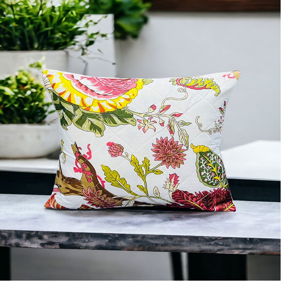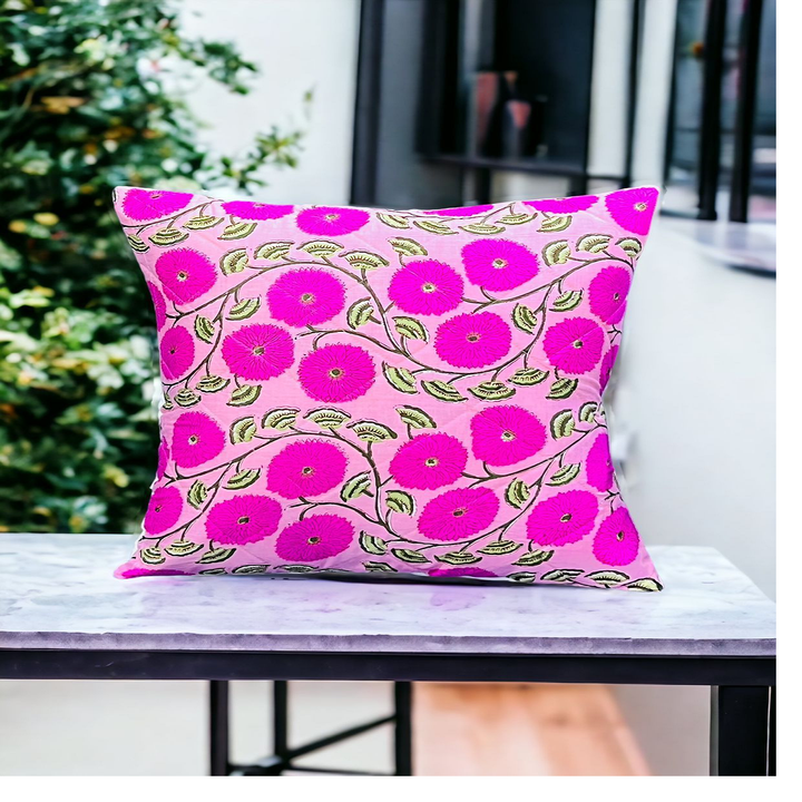 Custom Made Cushion Covers,hand Crafted in 100 % Cotton Fabric Machine Washable for Home in pink Coloured Big Floral Print.