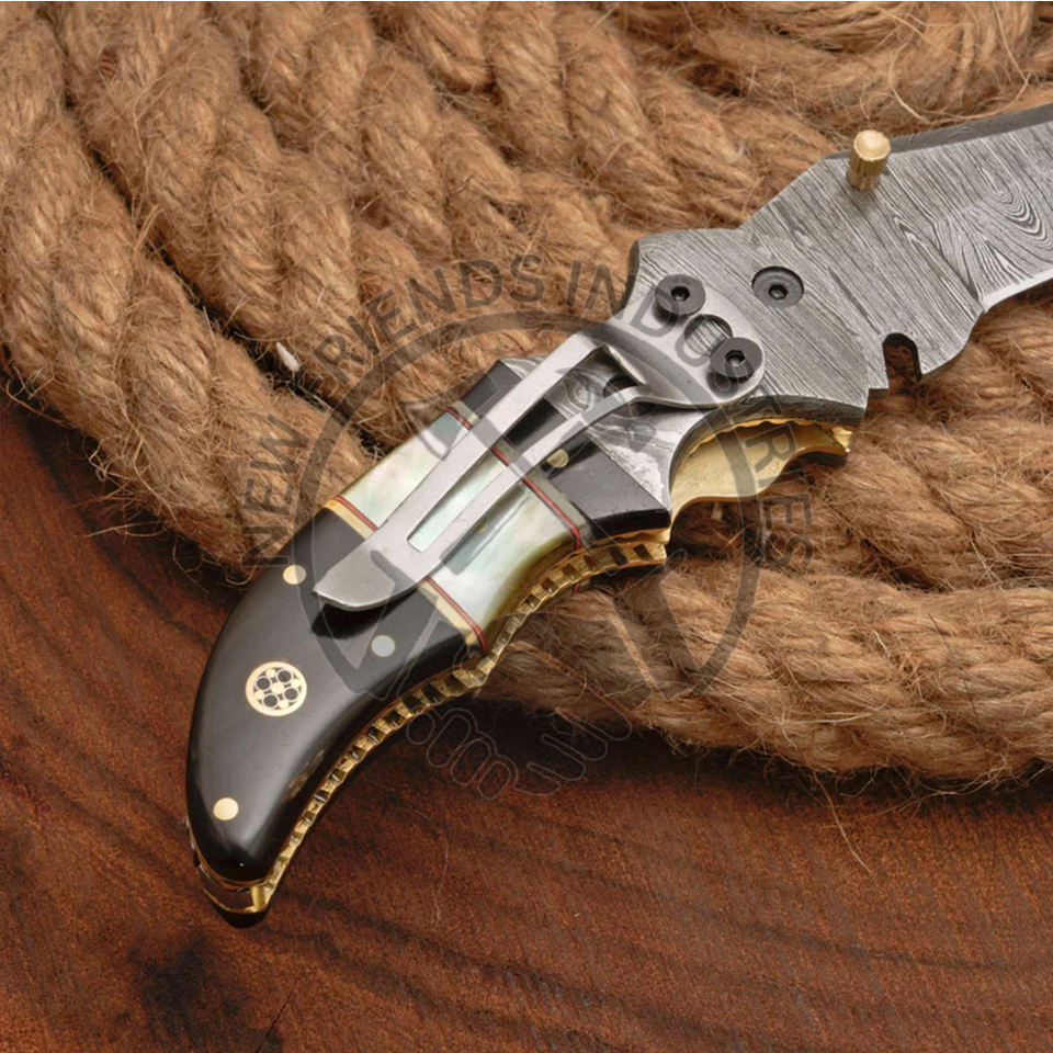 Real Pearl & Black Horn & Damascus Steel Bolster