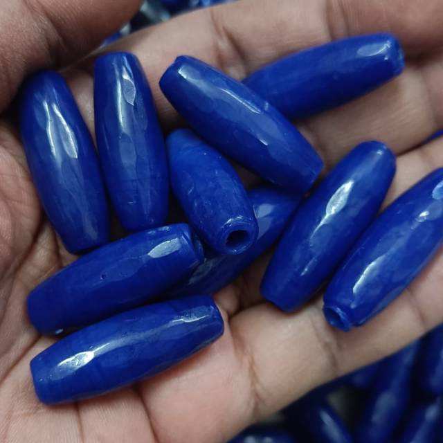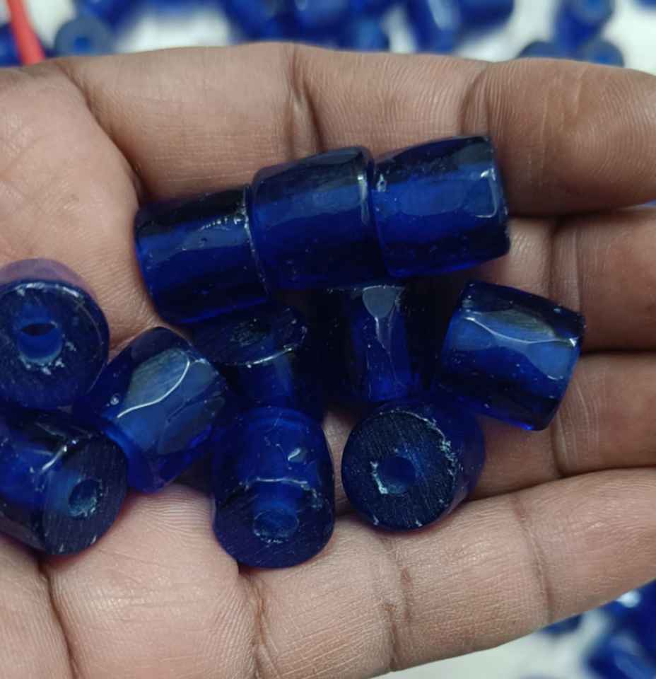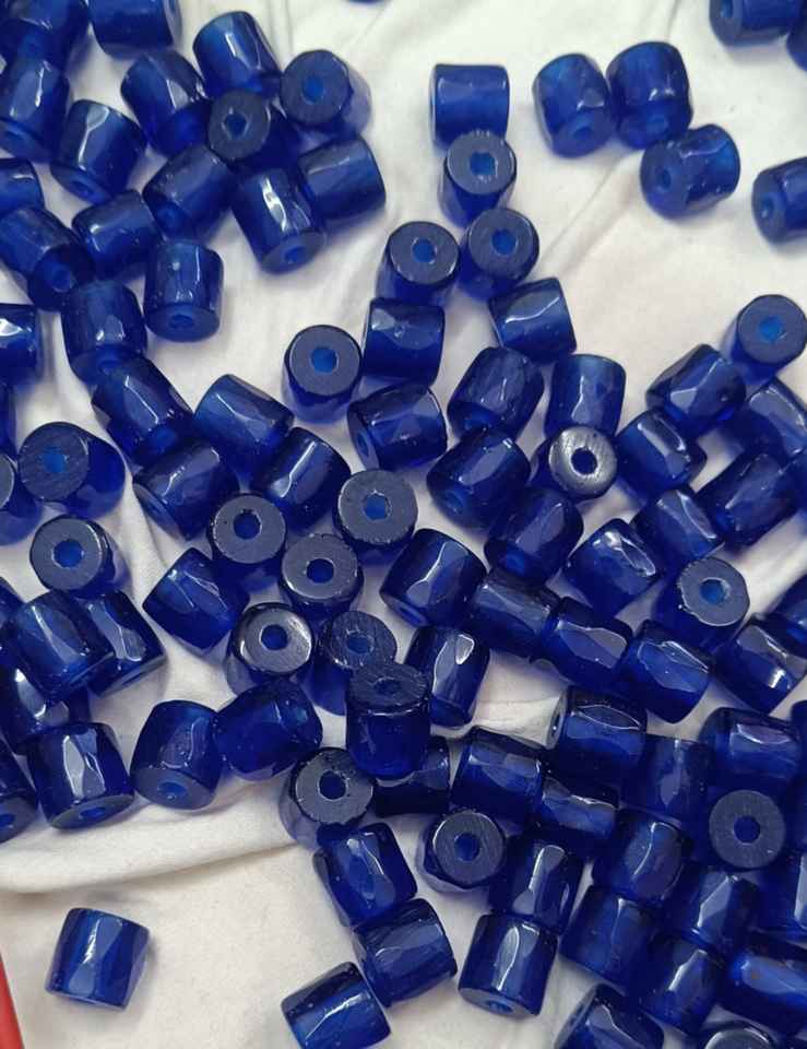 Custom Made Dark Blue Faceted Oval Trade Glass Beads Bulk Pack for African Trade Beads Jewelry Making DIY Necklace Craft Supply