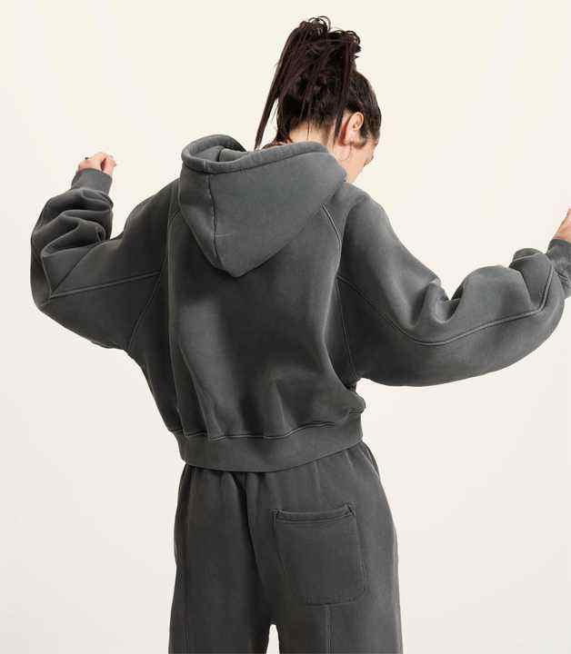 Custom Made Distressed Pullover Towel Embroidery Tracksuit 2 Pieces Cozy Sweatpants and Cropped Hoodie Set for Women