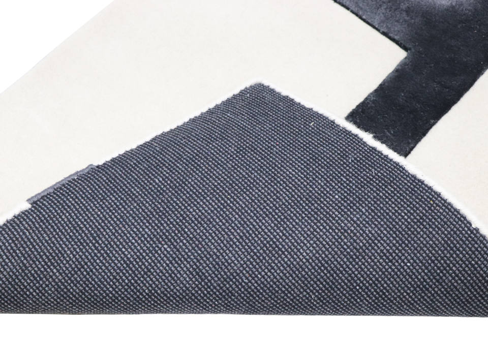 Custom Made Eco-Friendly Modern Geometric Wool Tencel Rectangle Cloth Backing Area Rug Medium Pile Thin Hand Tufted Ivory Black