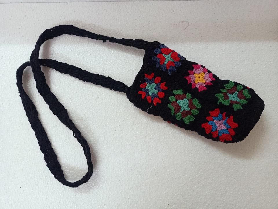 Custom Made Eco-Friendly Summer Crochet Bottle Bags with Polyester Cord Multi-Colored Flowers for Resale by Fashion Accessory