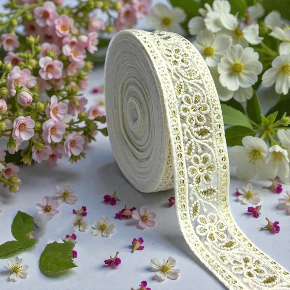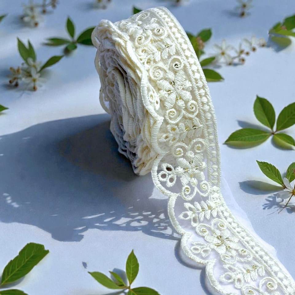 Custom Made Eco-Friendly White Floral Lace Intricate Embroidery 100% Cotton Vintage Style for Fashion Garments Bridal Wear Craft
