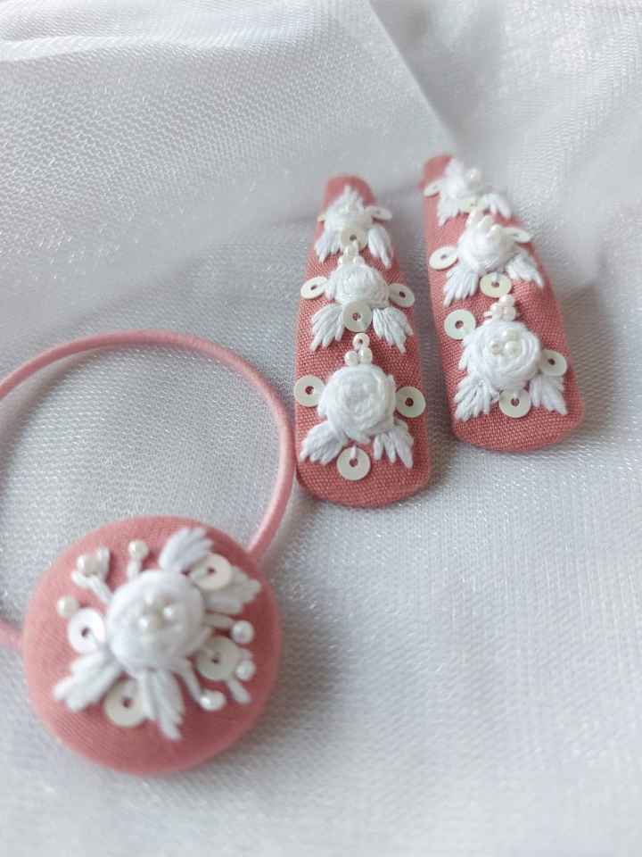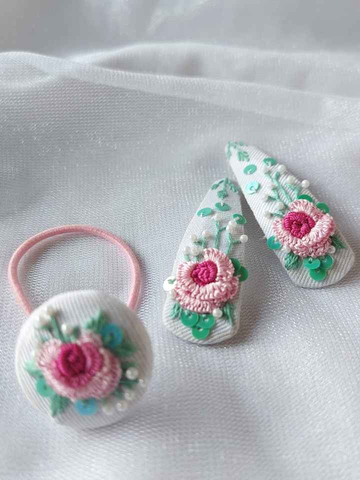Custom Made Elastic Hair Clips Intricate Embroidery in Multi Colours Acetate Material Resale Hair Accessory Store