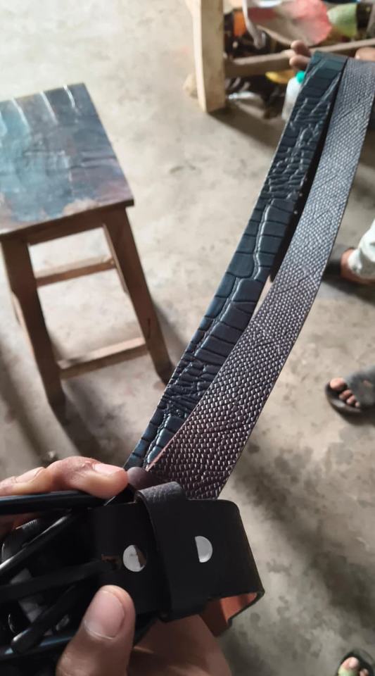 Custom Made Embossed Leather Men's Belts with Steel Buckle Waterproof Pin Buckle Striped Pattern-Rich Texture Durable Bold Edge