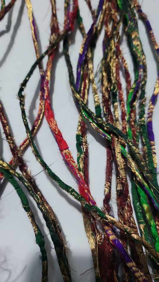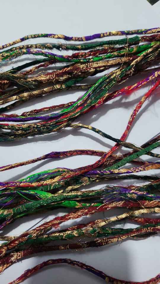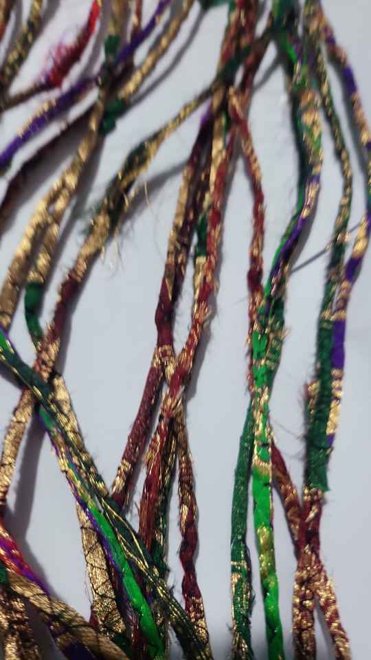 Custom Made Embroidered Sari Silk Ribbon Braids Made From Recycled Sari Silk Embroidered Fabrics for Resale