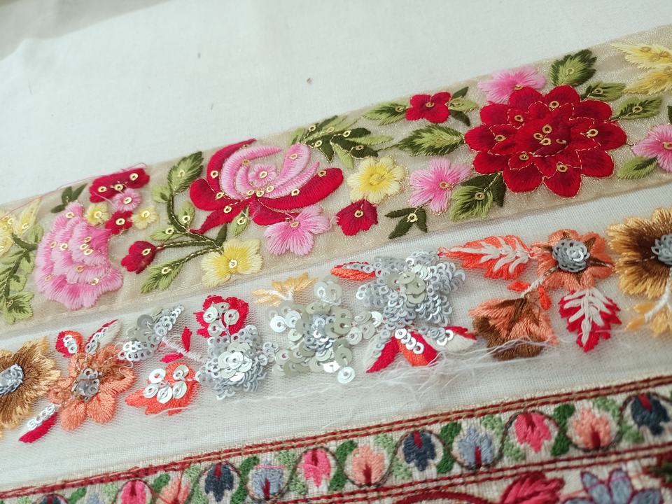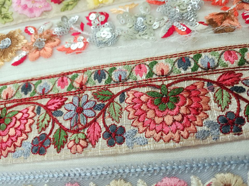 Custom Made Embroidered Thread Work Laces With Multi Coloured Options in Sequins Embroidery in 1.5 Inch Width