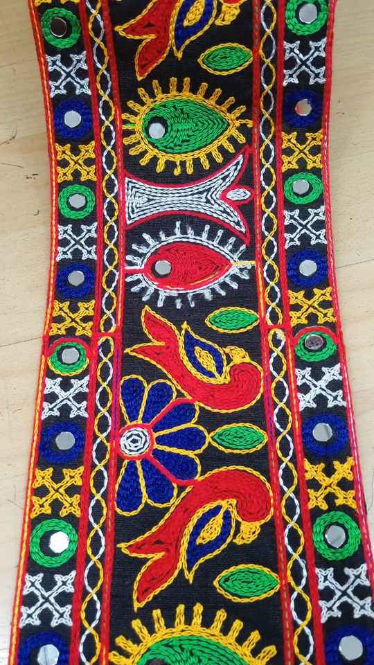 Custom Made Embroidered and Embellished Lace and Unique Handcrafted Lace with Mirror Detailing for Fashion Designer