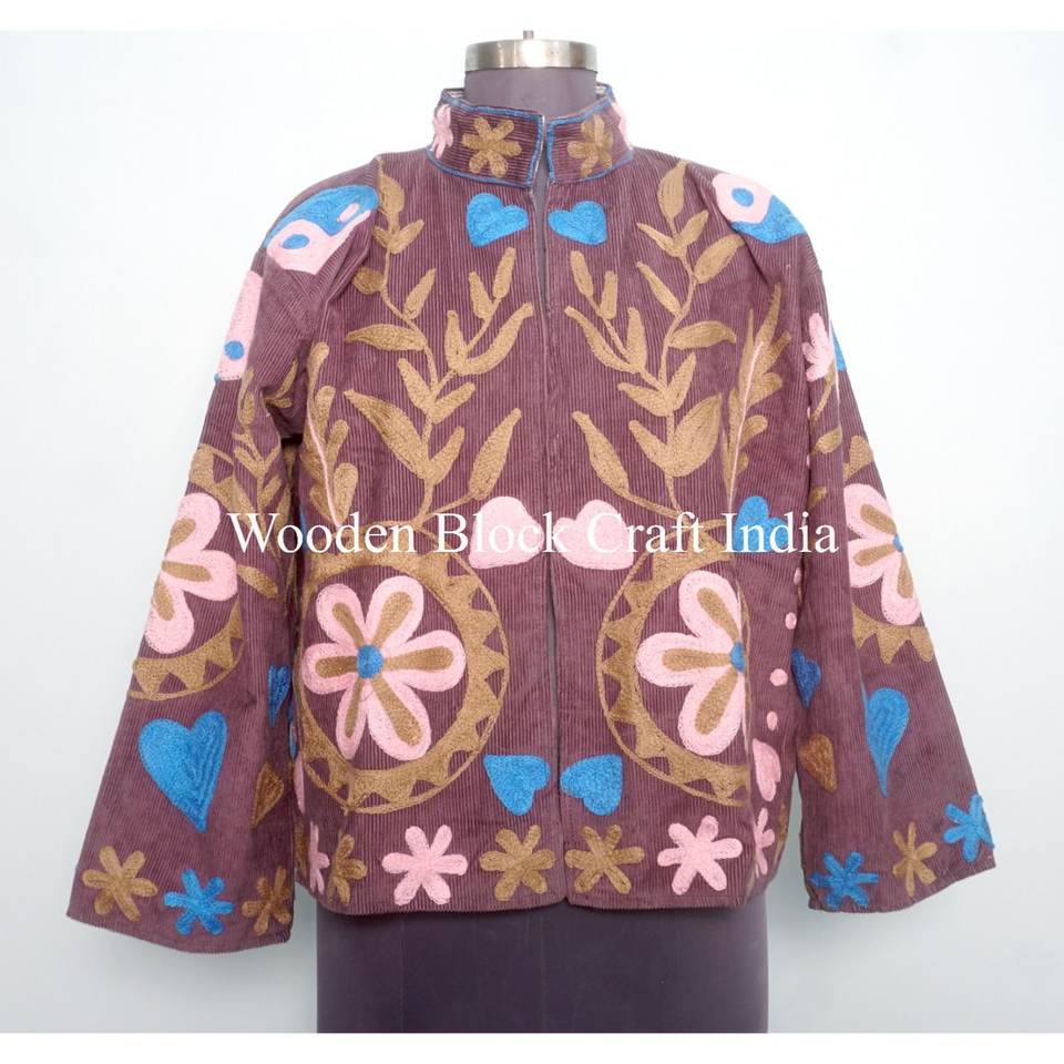 Custom Made Embroidered cotrise Woven Wool Jackets with Cotton Filled Artisan Craftsmanship Windproof Multi Coloured jacket