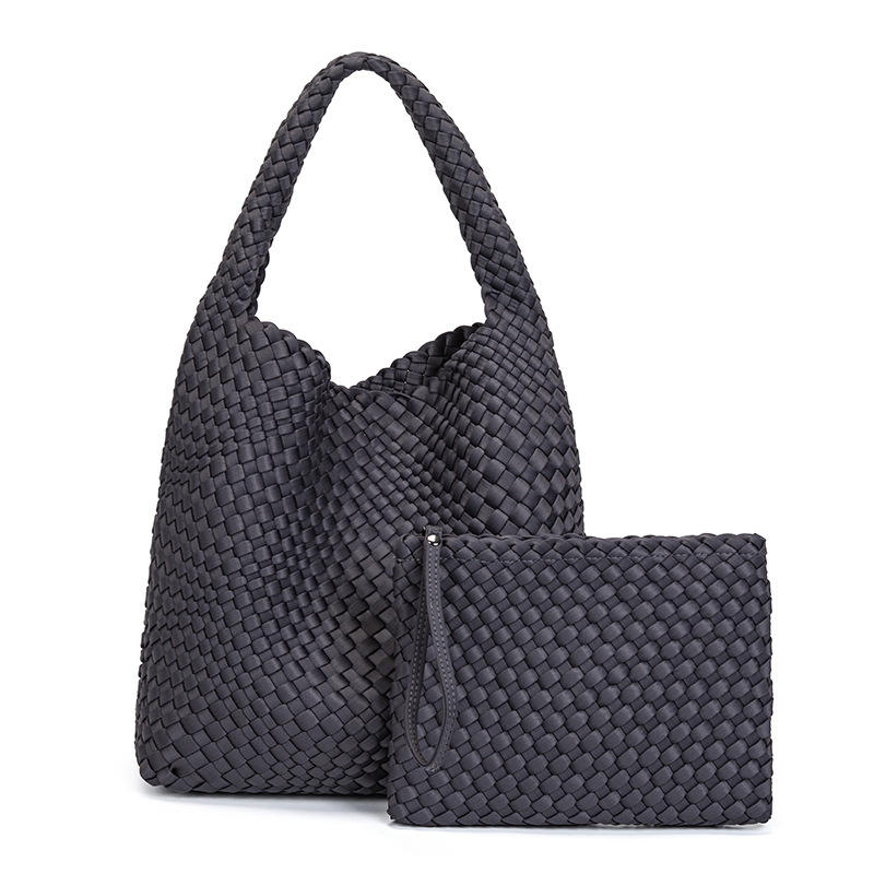 Custom Made Fashion Wholesale Nylon Neoprene Woven Beach Bag Tote Bag Large Capacity Handbag Braided Bucket Bags and Purse