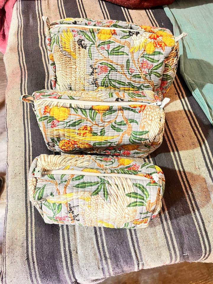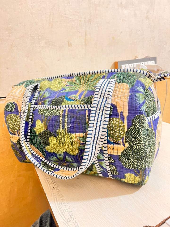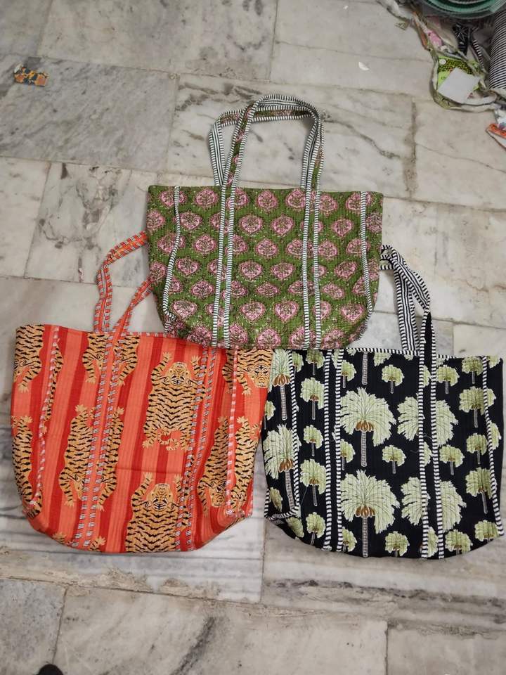 Custom Made Floral Multi Coloured Printed Hand Embroidered Kantha Quilted Shopping Bags Made From Cotton Block Printed Fabrics