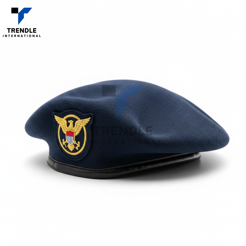 Custom Made Formal Ceremonial Parade Beret Hat with Metal Badge 100% Wool Wholesale Supply