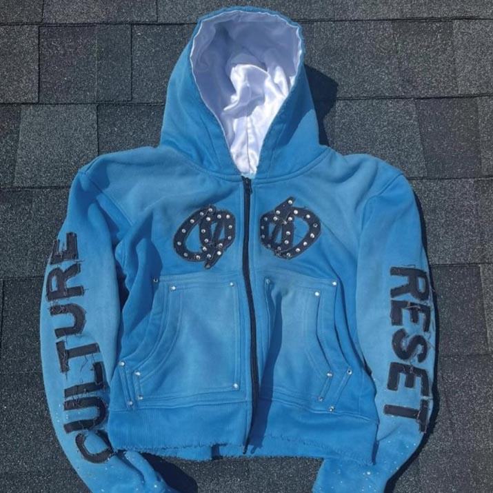 Custom Made Full Zipper Acid Wash Streetwear Hoodies Clothing Distressed Unisex Oversize Y2K Hip Hop Apparels hoodi for man