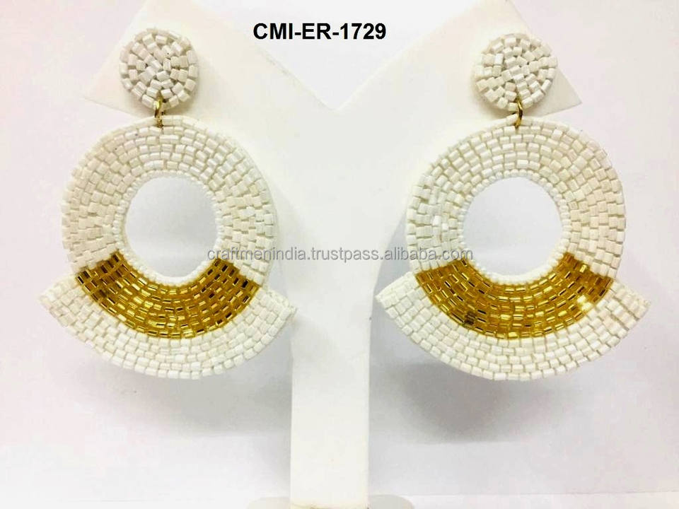 Custom Made Glass Seed Beaded Stud Earrings Classic Style Long Multi-Color Beads for Fashion Jewelry Designers Retail Stores