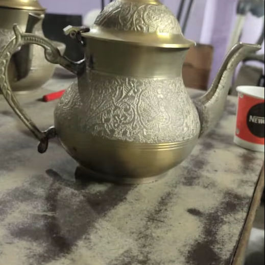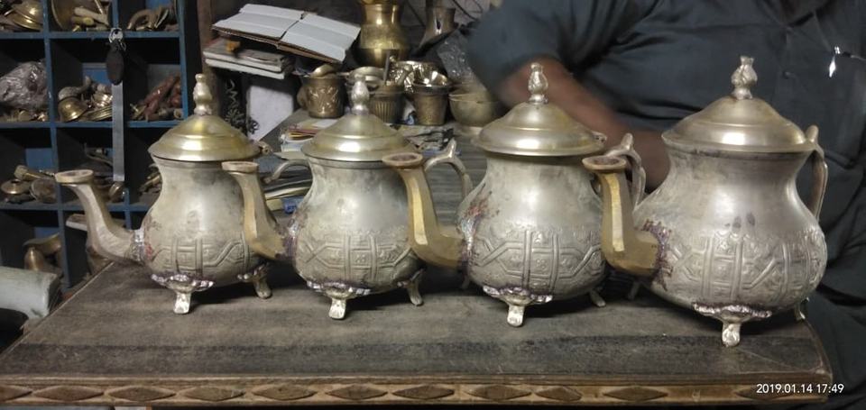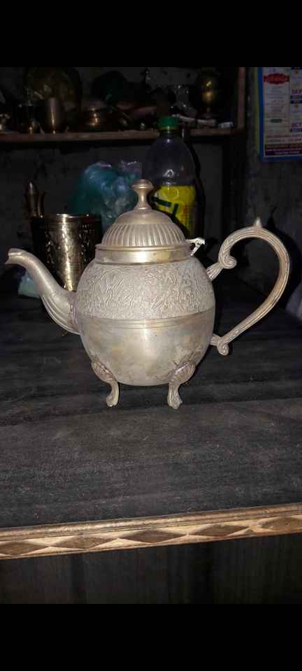 Custom Made Hand Carved Nickel Silver-Plated Kettle Feng Shui Modern Moroccan Tea Pot for Home Restaurant Resale Home Decor