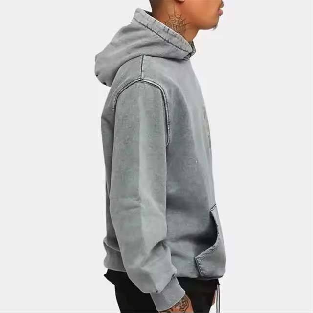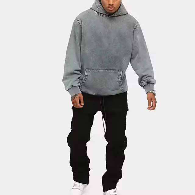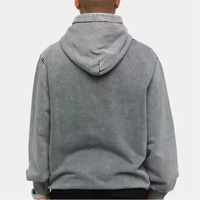 Custom Made Heavyweight Pullover Acid Washed Grey Hoodies for Men's Solid Color Quick Drying Fashionable Men's Hoodies