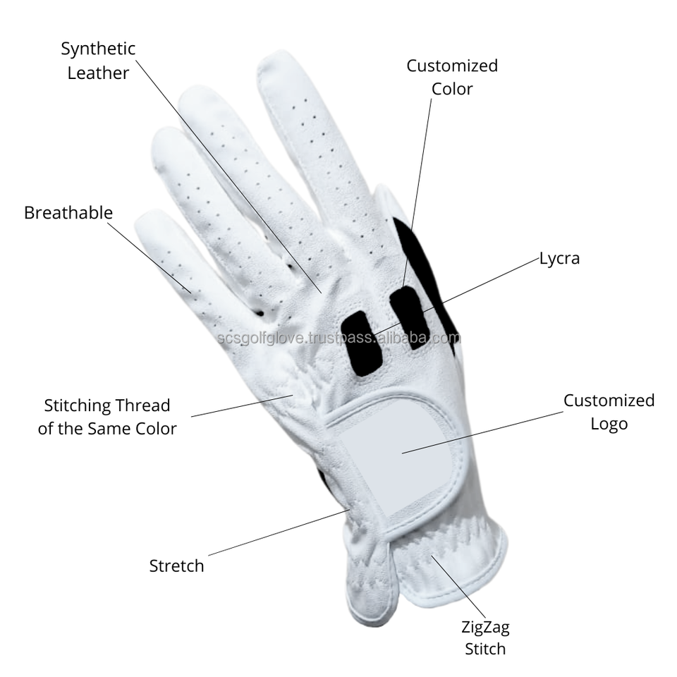 Custom Made High Quality Breathable Synthetic PU Leather Golf Glove for Women Men Left Hand Custom Logo Made Indonesia Sports