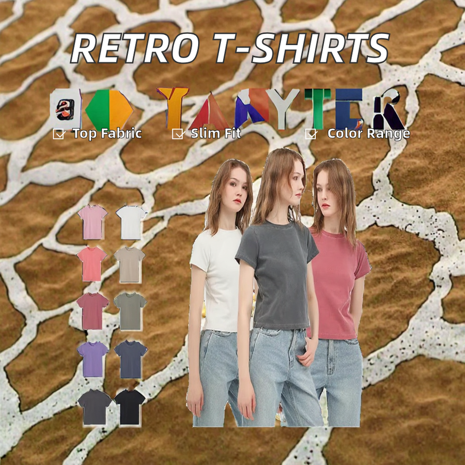 Custom-Made Knitted 91% Cotton High Street Retro Women's T-shirts Hot Girl Short-Sleeved Slim Tight Fit Logo Print for Summer