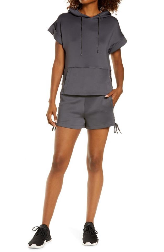 Custom Made Ladies Sports Gym Running Summer Hoodie Set Long Hooded Dress with Mesh Back Short Sleeve for Women