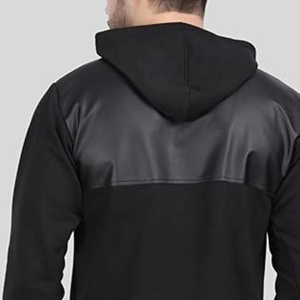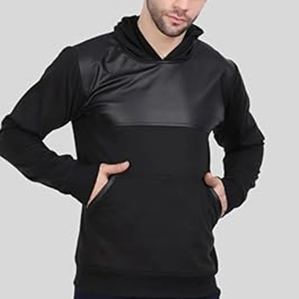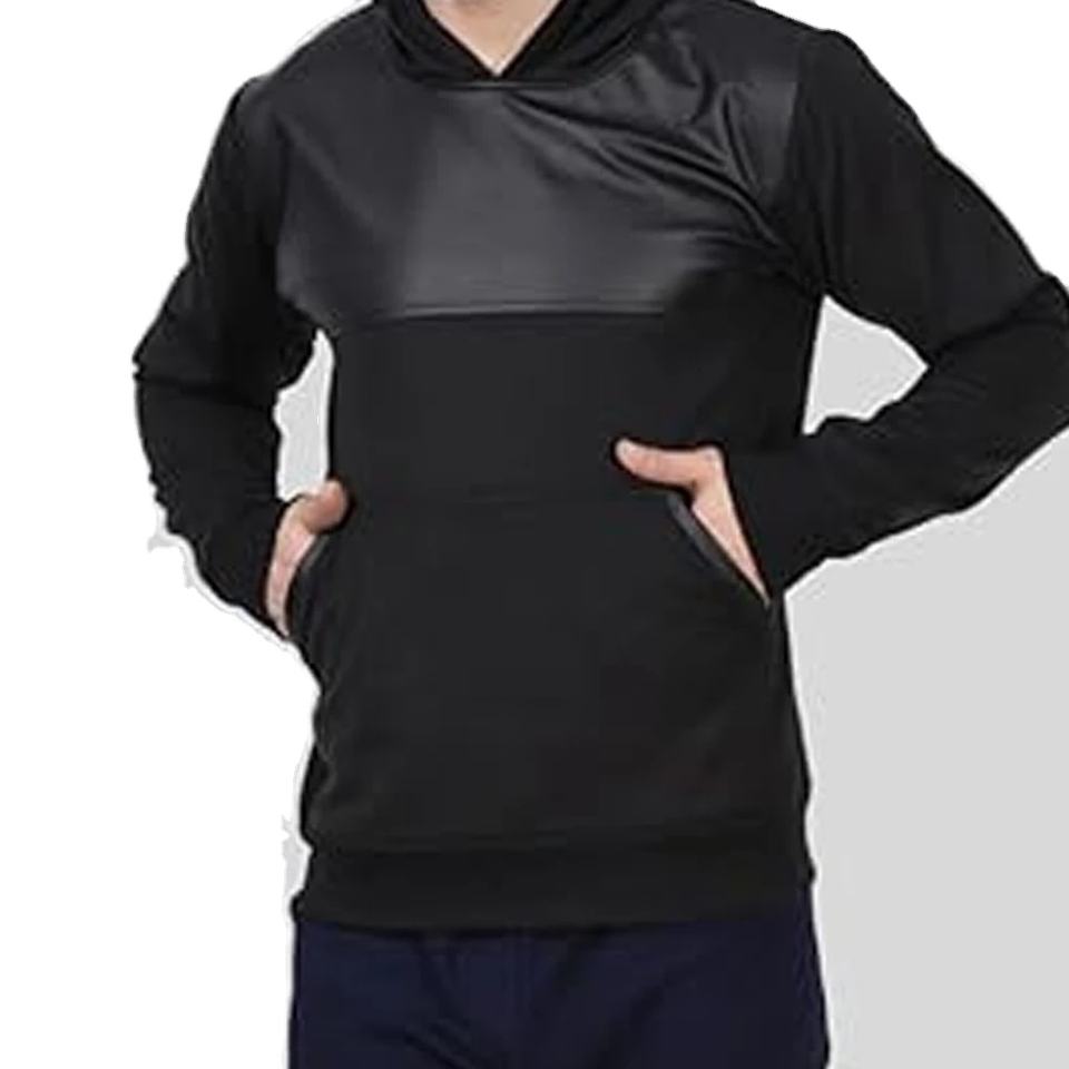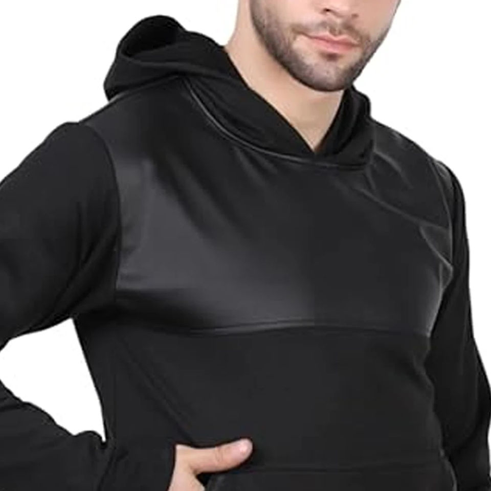 Custom Made Leather Hoodie Cheap Price Low MOQ / Solid Color And Pattern Men Heavyweight Unique Style Pullover Hoodie For Sale