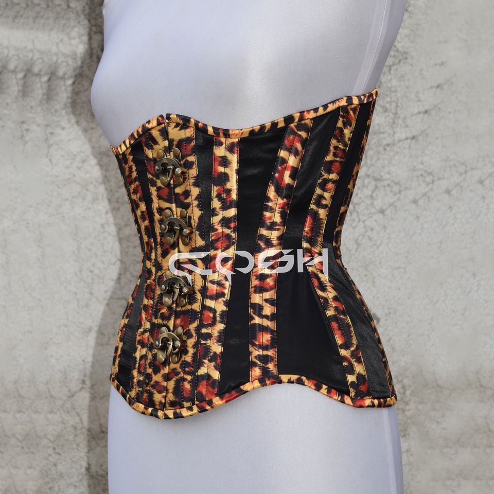 Custom Made Leopard Sublimated With Black Contrast Satin Underbust Steel Boned Corsets Supplier