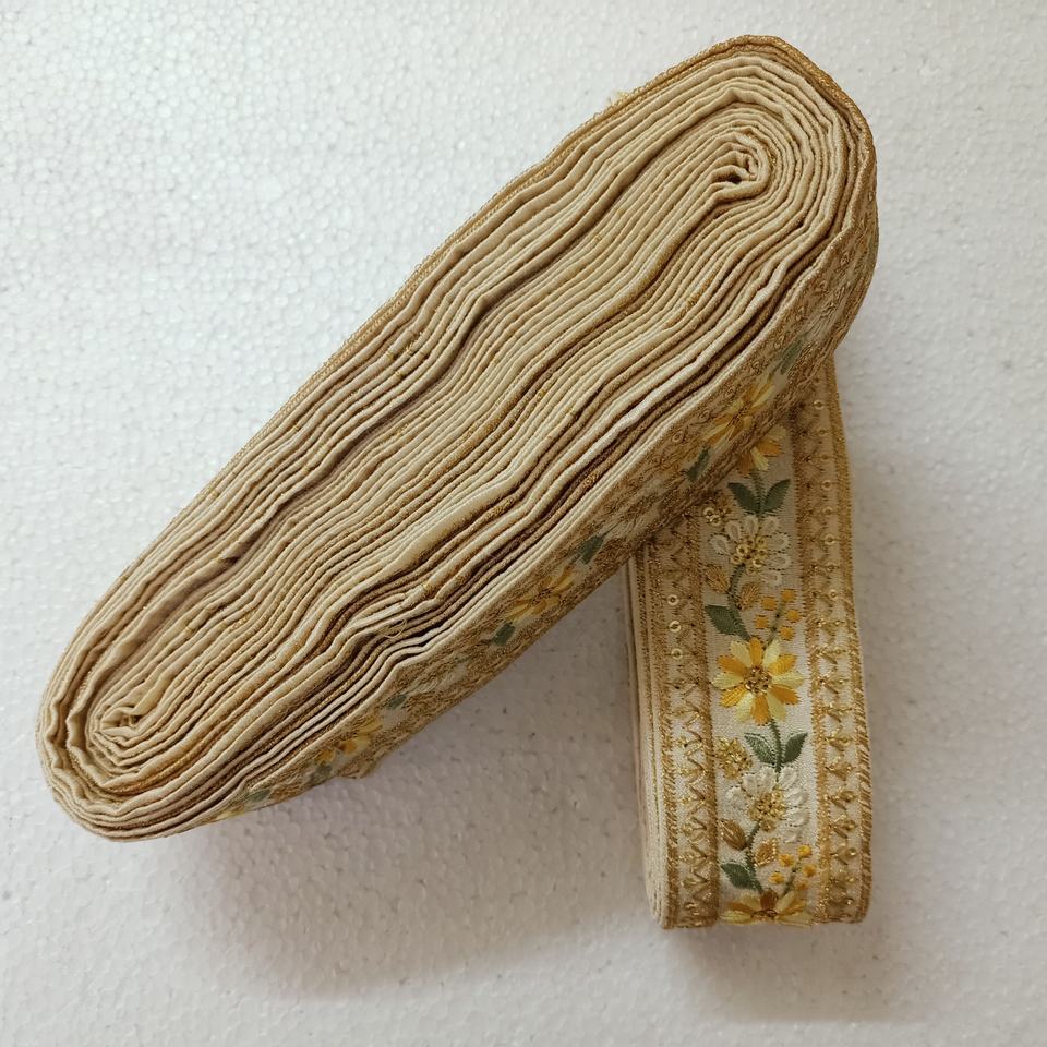 Custom Made Machine Embroidered Ribbons & Laces on White Base Fabric & Multi Colours for Wedding Dresses in 2.5 Inch Width