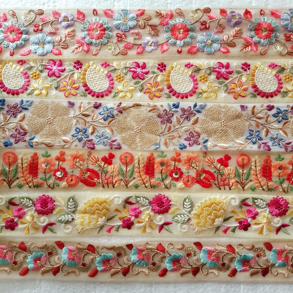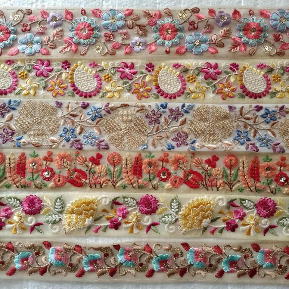 Custom Made Machine Embroidered Ribbons & Laces in Various Designs & Colours for Wedding Dresses with Sequins Work in 1.5 Inch