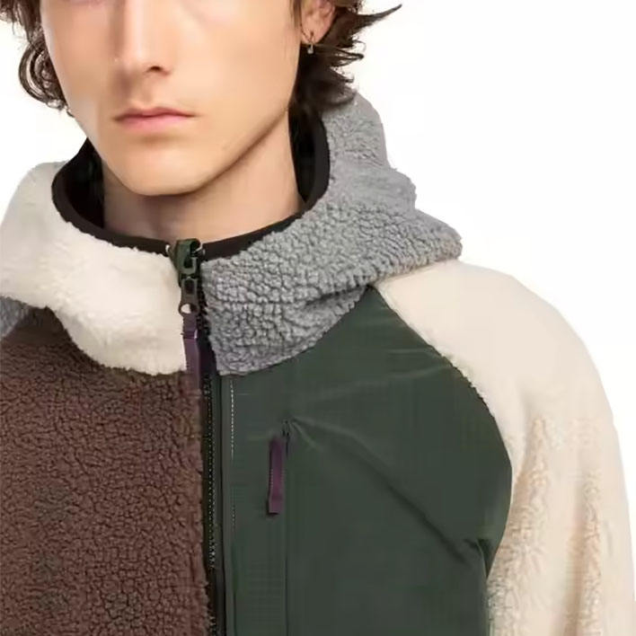 Custom Made Man Jacket Winter With Woven Patch Logo Zip up Warm Pile Sherpa Hoodie Multi Tone Fleece Jacket for Men